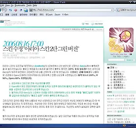IT 썸네일형 리스트형 스킨 수정 "아리아 스킨 2단 그린 버전" 아리아 스킨의 오리지널 제작자이신 clowleed님의 1단 버전에서 2단 보라색 버전으로 수정하신 daisy님께서 얼마전에 블루버전을 내 놓으셨었습니다. 블로그 계정을 티스토리로 옮기면서 블루도 좋지만 그린도 좋지 않을까? 하는 생각으로 daisy님의 보라색 버전에서 그린버전으로 나름 산뜻하게 수정 해 보았습니다. 헌데 만들고 보니 오리지널을 만드신 clowlee님의 스킨과 비슷한 색상패턴이 나왔습니다.(당황;;) 결국 daisy님의 스킨을 마이너 업그레이드시킨 버전으로 보시면 될것 같습니다. 수정하는 김에 디버깅도 나름대로 고생끝에 Opera(오페라) 브라우저에서도 파이어폭스 만큼 나오도록 수정했습니다. 대략 IE6.0 100%, FF 95%, Opera 90% 호환됩니다. 1. 보라색에서 그린으로 전.. 더보기 마이폴더(myfolder.net) 개편!! 오늘자로 인터넷 자료실 서비스를 하는 마이폴더넷이 처음부터 끝까지 유저를 위해 개편되었습니다. 이번 개편은 거의 재창조의 수준일 정도로 사이트의 근간부터 바뀌었습니다. 1. 유저가 선택 가능한 첫화면 설정 마이폴더의 첫화면을 유저 입맛대로 쿠키 처리를 통해 처음 방문시에 원하는 유형을 고르면 다음 부터는 자동으로 해당 유형의 첫화면으로 시작됩니다. 2. 유저 참여형 리뷰시스템 유저는 언제든지 "리뷰 참여하기"버튼을 통해 리뷰를 수정/보완 할 수 있다. 이번 마이폴더의 가장큰 변화가 이 유저 참여형 리뷰시스템이 아닐까 합니다. 지금까지 서비스하는 측에서 일괄적으로 제공되던 리뷰서비스가 아니라 이젠 마음에 들지 않는 리뷰가 있다면 혹은 부족한 내용이 있다면 유저 직접 리뷰글을 수정 할 수 있게 되었습니다. .. 더보기 Java VS .net - 트렌드인가 아니면 잠재능력인가? 현재 프로그래밍의 대세는 자바(Java)다. 지금 자바를 주무기로한 인력이 턱없이 모자르는 상태다. 덕택에 현재 교육기관은 프로그래밍 강좌의 약 80% 가량이 Java의 커리큘럼을 갖게 되었다. 지금 현장에서는 80%이상이 자바 프로젝트라고 한다. (게다가 이번 국민은행 프로젝트라는 대규모 프로젝트도 있다) 지금 안정기에 있는 .net이 있다. 어느정도 인력의 수요와 공급이 맞아 들어가고 있다는 것 같다. MS의 저력은 직접 OS 시장을 주무르고 있다는 점이고 일반 사용자가 사용하게될 차기 운영체제 VISTA에는 .net프레임웍크가 기본 내장되어 있다. 그만큼 협소하던 .net의 진출 방향이 넓어진다는 이야기이다. MS가 리눅스 플랫폼의 .net 개발킷과 프레임워크를 발표한다는 것은 리눅스가 윈도우를 압.. 더보기 뉴 트랜드 2006 세미나(New Trends 2006 Seminar) 금일 브레인박스 주최의 뉴 트랜드 2006 세미나를 다녀 왔습니다. 이 더운 날 무려 한시간 가량의 거리를 지하철과 도보로 이동하였다죠. (벌써 이것으로도 녹초) 이번 세미나의 가장큰 잇슈는 인텔의 새로운 CPU인 코어2 듀오프로세서 였습니다. 관람객은 물론 그것과 함께 아니 이게 주 목적으로 다들 가셨겠죠 ('⌒') 바로 세미나 중간 중간에 있었떤 상당히 많은 수량의 경품 지급 이였습니다. 저도 뭐 일단 크게 할일도 없고 해서 혹시나 하는 마음에 방문했었습니다. 만.... 꽝...꽝꽝꽝(제길.. 이런 경품 한번도 당첨 된 적이 없네요. 불운한 나 자신을 저주. ㅠ_ㅠ) 경품은 아래 이미지를 참고 하시면 상당한 양이란 것을 알 수 있을 겁니다. 아직 찾아보기 힘든 콘로도 상품으로 나왔는데 받아가신분 부럽.. 더보기 MS 비스타(vista) 음성인식 시연장면 마이크로소프트(MS)의 차기 운영체제 윈도우 비스타(Vista) 음성인식 시연 장면 입니다. 개망신[각주]개망신 -亡身 : [명사] 아주 큰 망신. [예] 그는 말도 안 되는 소리를 했다가 개망신을 당했다. [/각주] 이군요. 크하하하 더보기 미녀와 세차(?) - 당황 스럽네..;; 크아악!! 더보기 테터 플러그인 - 랜덤 포토 뷰어 수정 며칠간 틈틈이 주노님의 랜덤 포토 뷰어 플러그인을 수정했습니다. 별거 아닌 작업임에도 불구하고 상당히 시간이 걸려 버렸네요. 원래는 바둥이님의 플러그인을 주노님이 수정한 것을 다시 제가 수정한 것이 되죠. 기본적인 기능은 포스트에 사용된 이미지들을 랜덤으로 메인화면에 보여주는 것입니다. 바둥이님의 플러그인은 원본 이미지 자체를 읽어 오는 것이라 좀 부담스러운 면이 있었습니다. 대신 간편하죠. 그것을 주노님이 GD를 이용하여 서버에 10Kbyte 이하의 작은 손톱 이미지를 저장하고 그것을 대신 보여주는 방식으로 수정 하셨습니다. 두 분의 플러그인 모두가 이미지를 강제로 리사이즈 시켜버려서 이미지가 찌그러지는 현상이 있었습니다. 그래서 저는 주노님의 소스에서 이미지가 왜곡되지 않게 가로, 세로비율에 맞게 리.. 더보기 Billy V1.04 Beta 리뷰 - mp3, ogg 플레이어/최저사양/단축키 대략 1년 정도 마이폴더넷에서 알게 되어 혼자 쓰던 프로그램인데 쓰면 쓸수록 혼자쓰기엔 아까워져버려서 어쩔 수 없이(?) 포스팅하게 되는군요. ::프로그램 다운로드(Billy V1.04 Beta + 애드온 압축파일):: Win 95/98/NT/Me/2000/XP/2003 지원 ::짤막한 요점:: 푸바(foobar)보다도 낮은 최저사양/없을 것은 아예 없는 심플한 인터페이스/mp3, ogg, wav, wiamp 음악방송 재생/최강의 단